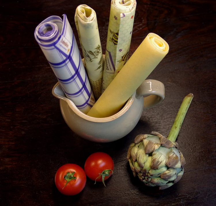Bijenwasdoeken zijn het alternatief voor huishoudfolie. Voedsel blijft langer vers en je vermijdt het gebruik van plastic en aluminiumfolie. Bijenwasdoeken van beeskin worden in Berlijn met de hand gemaakt van Europese grondstoffen.