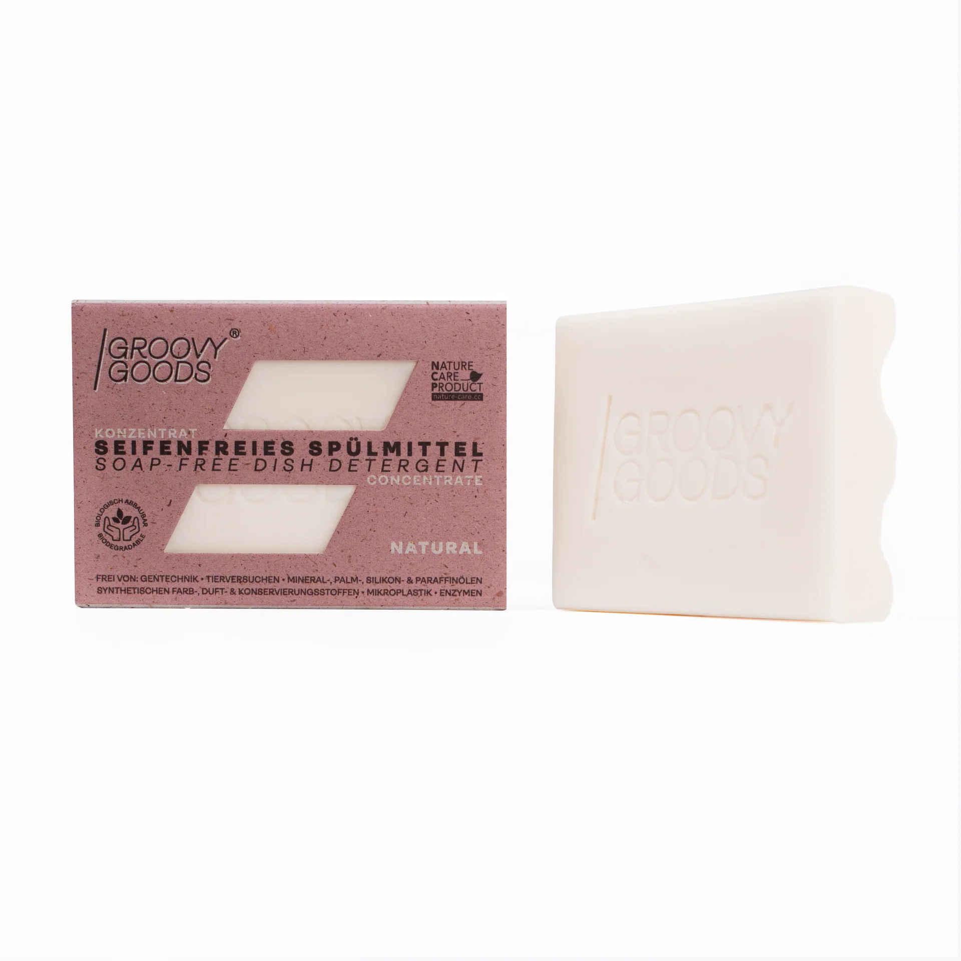 Zeepvrij, vast wasmiddel, zonder geurstoffen! Gecertificeerd als “Natuurverzorgingsproduct” – daar zijn we echt trots op! Je zult van mij houden, want als zeepvrij afwasmiddel werk ik zonder problemen met hard water – en met volle kracht! Met mijn supersterke vetoplossend vermogen help ik jou om jouw pannen en borden in een mum van tijd vetvrij en sprankelend schoon te krijgen! Ook jouw bril zal er blij mee zijn, want hij glanst al snel weer zoals op de dag dat je hem kocht. Ik doe in geen enkel opzicht onder voor een standaard afwasmiddel en heb 100% plantaardige ingrediënten in mijn bagage!