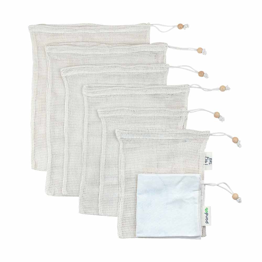 Pandoo groente- en fruitnetten (S/M/L) plus broodzak- 7 stuks