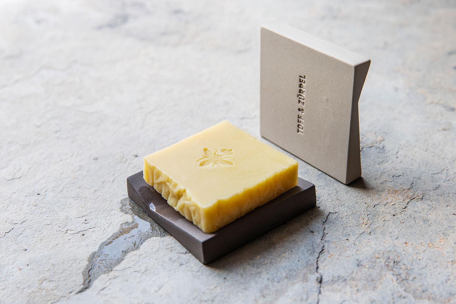 De helling aan de bovenkant van onze zeepschaal transporteert het aflopende water richting de gootsteen en biedt de zeep een minimaal contactoppervlak zodat deze snel en goed kan drogen. De nogal ongebruikelijke weglating van het glazuur voegt een belangrijke functie toe aan ons zeepbakje: het voorkomt dat de zeep wegglijdt. Door het zonder gaten of groeven te doen, is het niet alleen mooi eenvoudig, maar ook gemakkelijk schoon te maken.